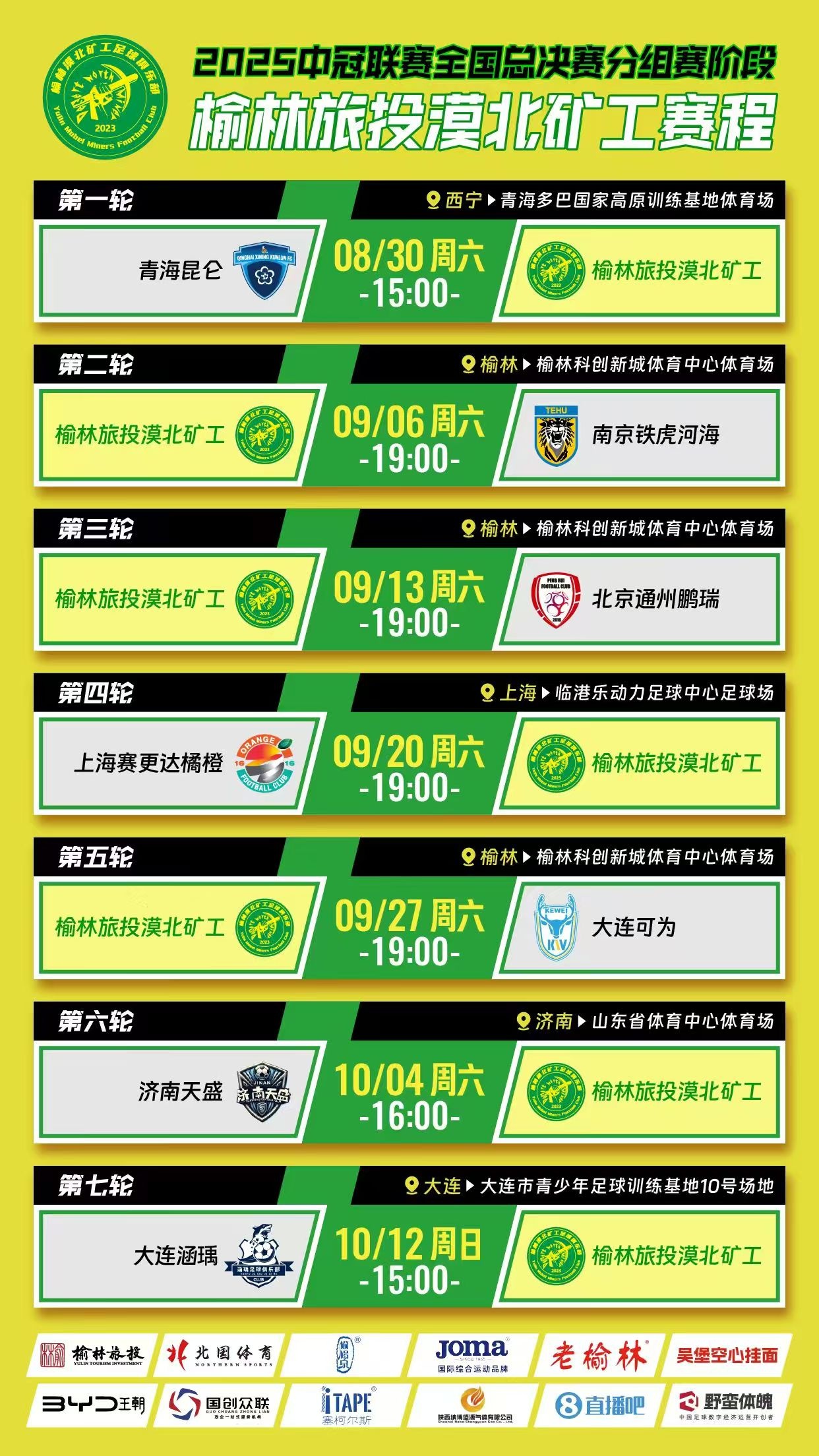 2025年8月,中国足球协会会员协会冠军联赛(中冠联赛)全国总决赛的抽签仪式在北京举行,16支参赛球队的分组赛对阵表正式出炉。代表陕西足球出征的榆林旅投漠北矿工足球俱乐部将与其他15支球队在8月底展开角逐,争夺3.5个宝贵的中乙联赛晋级名额。